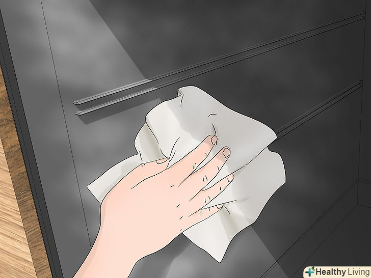 Витріть залишки пасти і оцту вологою ганчіркою для посуду.Візьміть нову ганчірку для посуду, змочіть її і вичавіть зайву воду, щоб вона була не надто мокрою. Витріть Водний розчин білого оцту і залишки харчової соди. Можливо, доведеться злегка натискати на ганчірку, і незабаром внутрішня поверхня духовки заблищить.- При необхідності нанесіть на залишилися плями ще трохи оцту, щоб повністю видалити їх.
