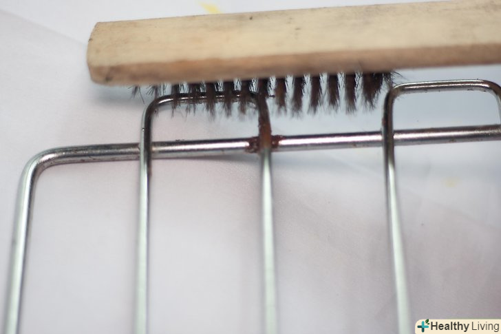 Продовжуйте очищати поверхню, покриту пригорілими продуктами, за допомогою дротяної щітки.решітка не повинна бути ідеально чистою.