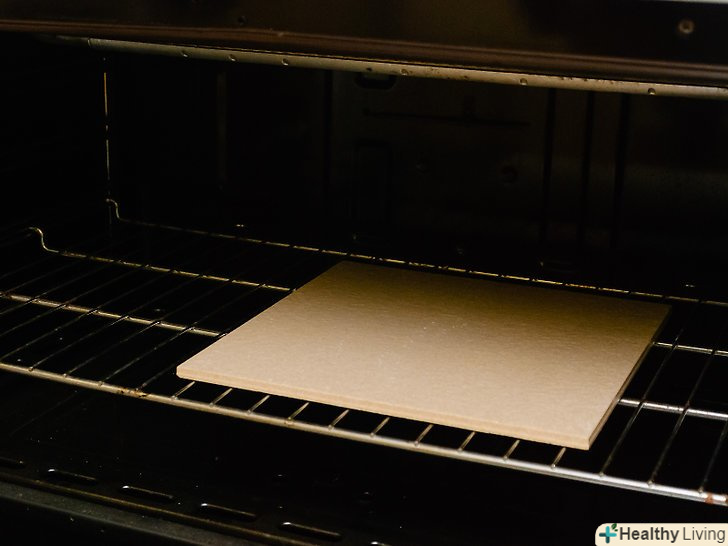 Помістіть камінь в духовку і розігрійте до 500 градусів.необхідно поступово розігрівати піч, щоб запобігти появі тріщин в камені через різкий перепад температур. Скористайтеся функцією попереднього нагріву, щоб температура збільшувалася поступово. Залиште камінь в духовці як мінімум на годину після того, як температура досягла 500 градусів.- Цей же метод варто застосовувати і при приготуванні піци.