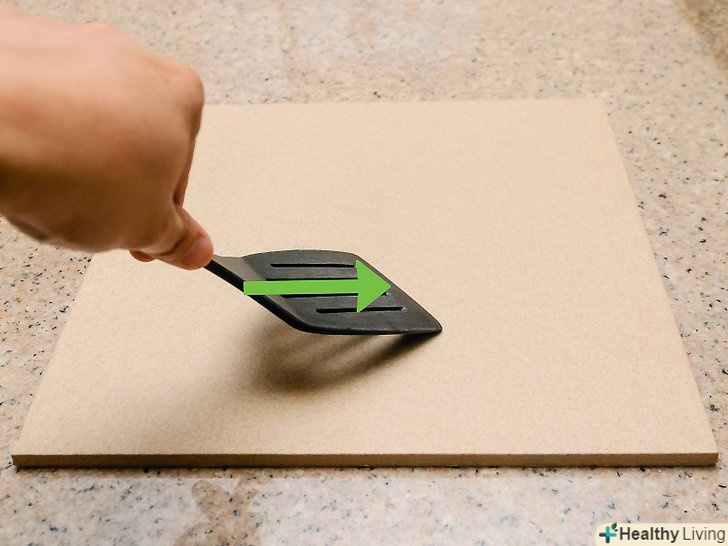 Видаліть великі підгорілі частинки їжі за допомогою пластикового шпателя.перш ніж приступити до чищення каменю із застосуванням харчової соди необхідно переконатися в тому, що всі добре помітні шматки їжі видалені.- Проводите очищення каменю для піци дуже обережно, так як кожна наступна процедура з часом збільшує шанс утворення тріщин.[7]