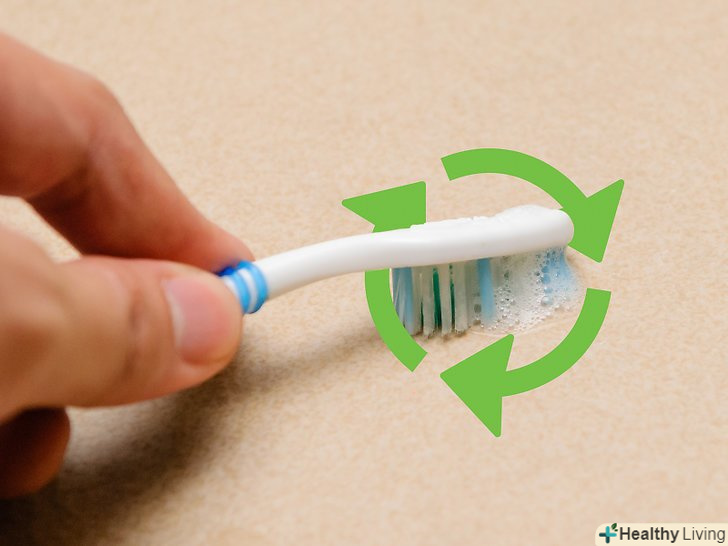 Нанесіть суміш на поверхню каменю за допомогою кисті.зубною щіткою або спеціальним пензлем для каменю здійснюйте кругові рухи з малою амплітудою і в першу чергу очищайте проблемні ділянки. Спочатку процедури приділіть особливу увагу знебарвленим і темним плямам на камені, а вже потім обробіть інші його ділянки.- Можливо доведеться пройтися ще раз по проблемних зонах з глибокими, підгорілими плямами, якщо такі ще залишилися після протирання всієї поверхні.