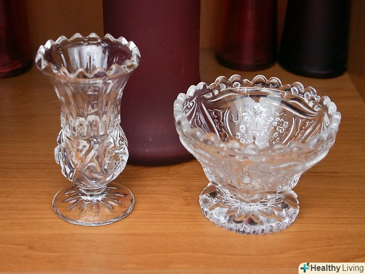 Протирайте декоративні Кришталеві предмети на зразок канделябрів, статуеток, підвісок, світильників, рамок для картин і книгодержателів м'якою безворсовою тканиною, змоченою в розчині теплої води з м'яким миючим засобом і білим оцтом.- Змішайте в теплій воді 30 г м'якого миючого засобу і 8 г білого оцту, що надає блиск.