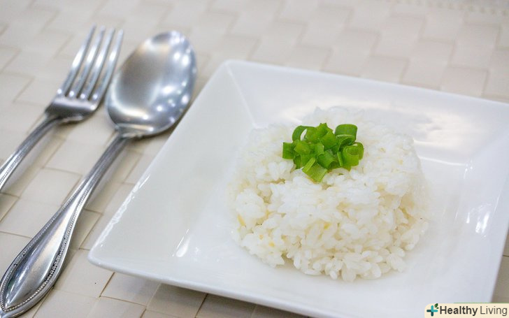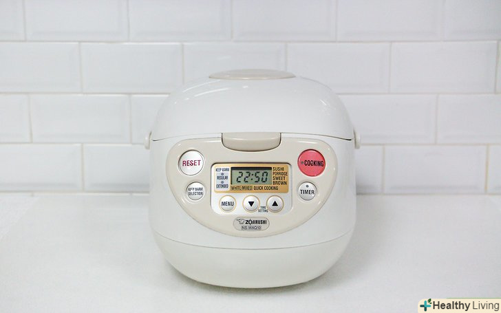 Ознайомтеся з додатковими функціями своєї рисоварки. деякі рисоварки мають тільки функцію включення / вимикання. Інші рисоварки мають різні програми для варіння коричневого і білого рису, функцію відстрочки початку приготування на певний період.[9] у вас не виникне ніяких проблем, якщо ви будете користуватися парою основних кнопок, але все ж непогано було б ознайомитися з усіма можливостями вашої рисоварки.- Приготуйте рис в рисоварці.якщо у вашої рисоварки знімна каструля, поставте її, наповнену рисом і водою, назад в прилад. Закрийте кришку, застроміть шнур в розетку і включіть рисоварку. Коли рис готовий, клавіша повинна вимкнутися, на зразок тостера. У багатьох рисоварках рис залишатиметься гірчим, завдяки термостату, поки ви не відключите рисоварку від електромережі.