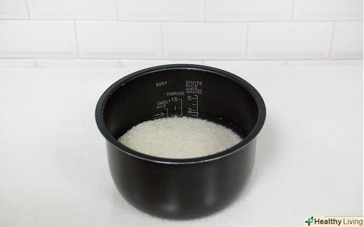 Відміряйте рис мірною склянкою і покладіть його в каструлю рисоварки.в деяких рисоварках каструля знімна, в інших рис необхідно класти безпосередньо в рисоварку. Більшість рисоварок продаються в комплекті з мірною склянкою об'ємом приблизно 180 мл або мірними ложками.[1] ви можете використовувати свій мірний стакан.- При необхідності промивайте рис.багато хто воліє промивати рис для того, щоб змити пестициди, гербіциди і різні забруднення з продукту. На деяких заводах із застарілим обладнанням зерна рису іноді виходять зруйнованими, а значить, багато зайвого крохмалю можна змити простим промиванням рису. Якщо ви промиєте рис, шанси на те, що він злипнеться, будуть мінімальні.[4] якщо ви вирішили промити рис, покладіть його в миску і залийте питною водою або потримайте його під проточною водою. Перемішуйте рис руками, щоб кожне рисове зернятко було занурене в воду і було промито. Повільно відкиньте рис на сито або на друшляк, ловіть впали зерна. Якщо вода змінила колір, або ви помітили багато зламаних зерняток або просто сміття, плаваючого у воді, промийте рис ще раз. Поки вода не стане відносно прозорою.