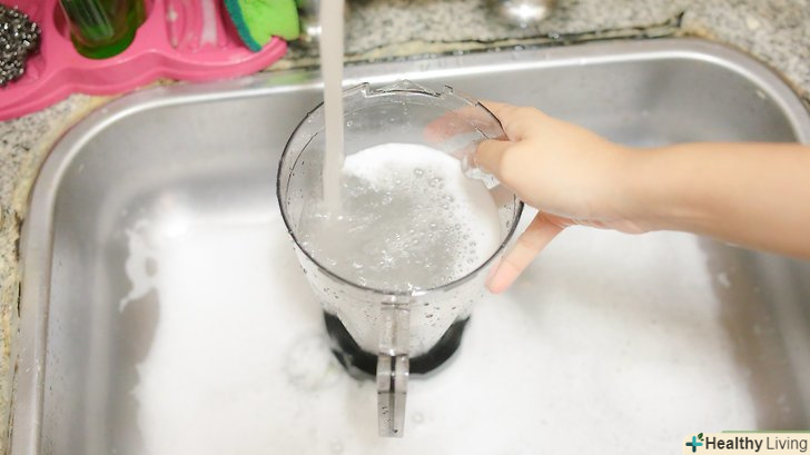 Почистіть блендер.зніміть леза і промийте окремо леза і сам блендер. Просто промийте їх під водою з милом. Крім цього ви також можете покласти їх в посудомийну машину. Це безпечно для використання.- Ніколи, ніколи не кладіть основу у воду! Якщо ви його заляпали, візьміть мокру ганчірку або губку і почистіть його. Його важко зіпсувати, але вода (або будь-яка інша рідина) здатне на це.