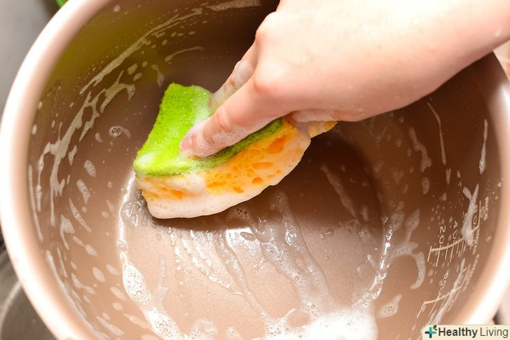 Вимийте повільноварку з милом і теплою водою.мити її досить легко. Якщо частинки їжі присохли до стінок, замочіть медленноварку в теплій мильній воді на 5-10 хвилин.- Знімні керамічні ємності можна мити в посудомийній машині.