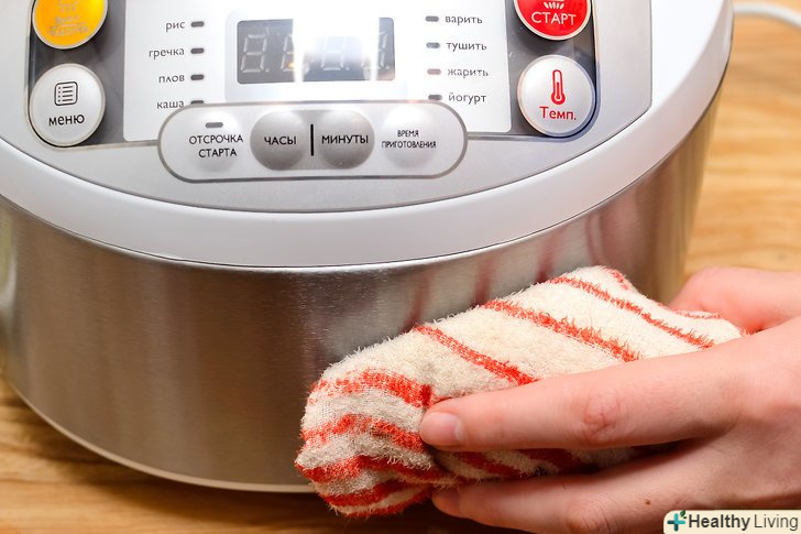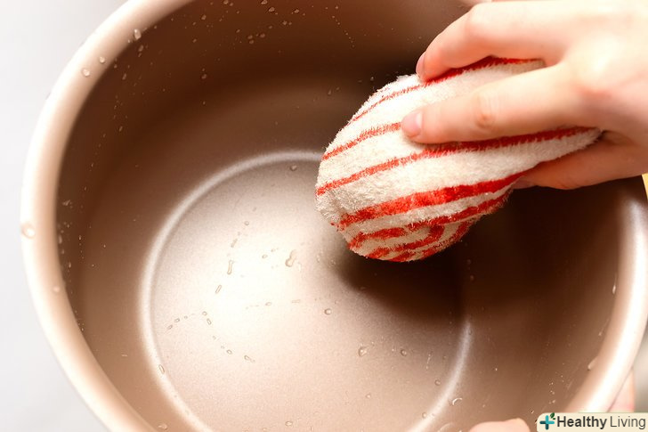 Протріть нагрівальну каструлю відрізком м'якої тканини, змоченим в теплій мильній воді.потім витріть насухо.