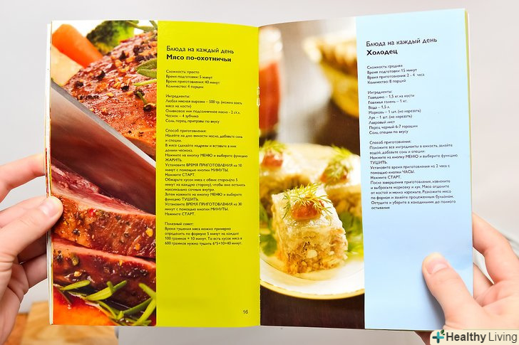 - Або знайдіть звичайний рецепт приготування на плиті і адаптуйте його для медленноварки. Наприклад, вам знадобиться використовувати лише 50% рідких інгредієнтів, так як рідина з медленноварки не випаровується. Також, якщо в звичайному рецепті потрібно підсмажити або спекти що-небудь при високій температурі, то на медленноварке потрібно вибрати режим високої температури, і, відповідно, для приготування на повільному вогні, вибирайте режим низької температури. Перший час вам доведеться експериментувати з часом приготування, але, в середньому, всі страви готуються протягом 4-6 годин.