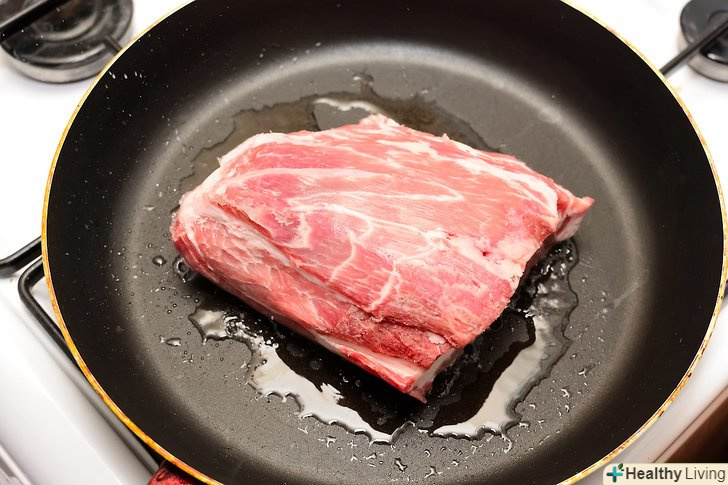 Підсмажте м'ясо до зарум'янювання перед тим, як покласти його в медленноварку.м'ясо буде більш смачним і соковитим, якщо підсмажити його з усіх боків на розпеченій сковороді, додавши трішки оливкової олії.- Цей метод підходить для великих шматків ростбіфа і дрібних шматочків м'яса. Прожарьте його швидко і з усіх боків.