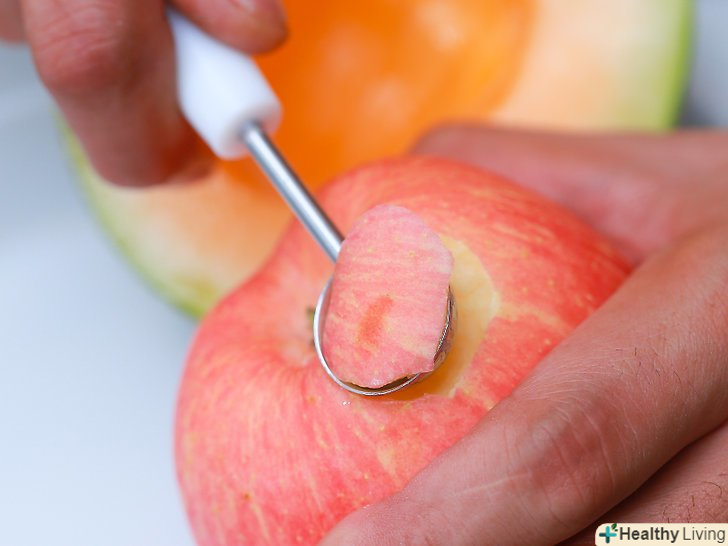 Видаліть плями з фруктів.розріжте персик навпіл і видаліть пляму. Якщо м'якоть навколо плями суха або запліснявіла, видаліть її за допомогою маленької ложки для дині.[10] усуньте інші дрібні дефекти з інших круглих плодів, на яких вам незручно використовувати ніж.- Таким же способом ви можете видалити Картопляні вічка.
