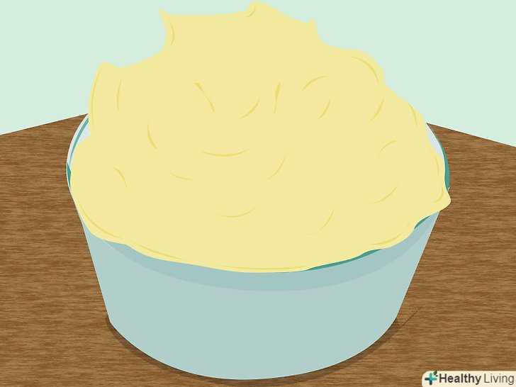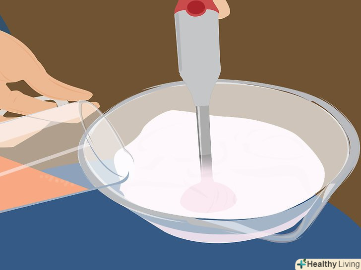 Змішайте .натисніть на перемикач на блендері, щоб активувати його. У більшості випадків швидкість тільки одна, і вона позначена словом "Вкл". Не забувайте занурювати лезо в суміш, щоб не забруднити все навколо.[6]- В процесі перемішування повільно переміщайте блендер вгору і вниз по ємності. Це дозволить домогтися однорідної консистенції суміші.