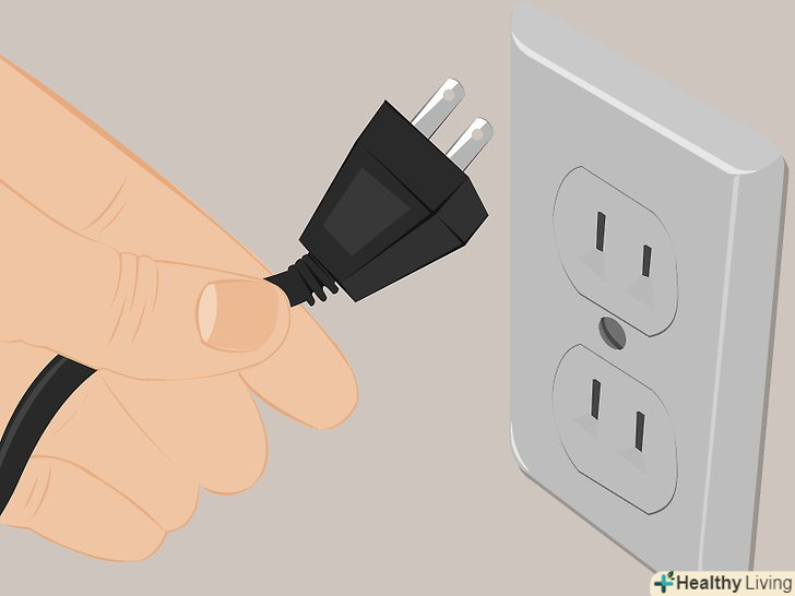 Підключіть шнур живлення.[4] виберіть розетку, яка знаходиться на віддаленні від робочої зони. Ви ж не хочете перерізати шнур під час роботи і створити тим самим небезпечну для здоров'я ситуацію? Якщо шнур занадто жорсткий і його важко контролювати, використовуйте важкий предмет, наприклад миску, щоб надійно зафіксувати його на місці.