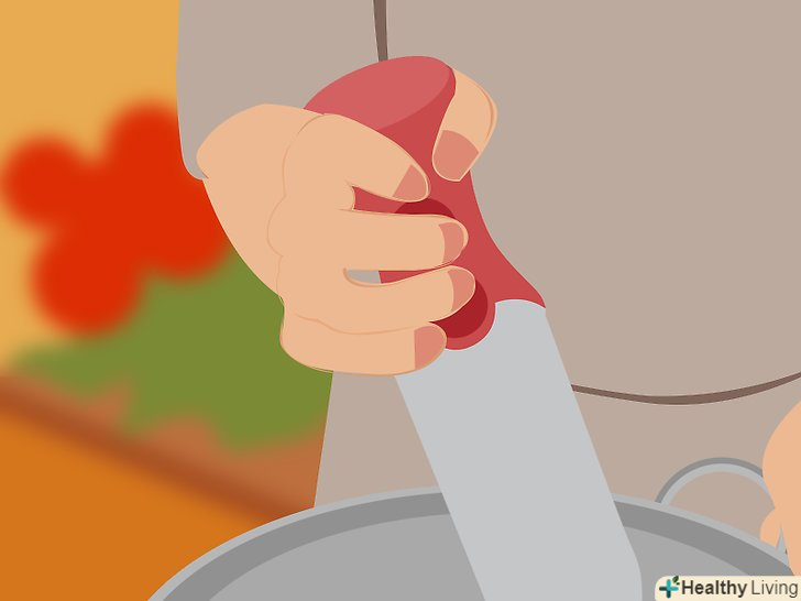 - Контролюйте рівень занурення блендера. Навіть під час використання чаші для змішування, при занадто сильному нахилі блендера їжа розбризкається по всій кухні.[13]