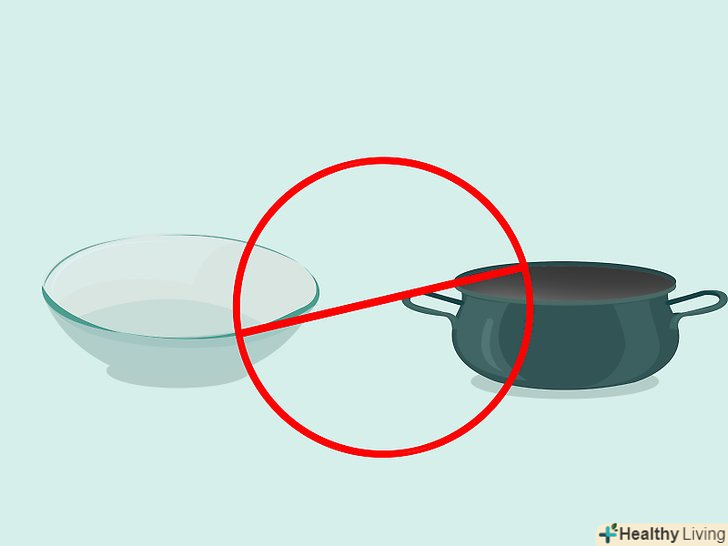 Не використовуйте сковорідку з антипригарним покриттям і скляний посуд.скло може відколотися або тріснути, якщо стикнеться з насадкою блендера. Якщо подібне все-таки трапиться, суміш доведеться викинути, інакше ви ризикуєте проковтнути скло. Антипригарне покриття також може відколотися і завдати шкоди вашому здоров'ю, якщо потрапить всередину разом з їжею.- Нержавіючу сталь відносять до найбільш безпечної посуді для використання в парі з занурювальним блендером.[9]