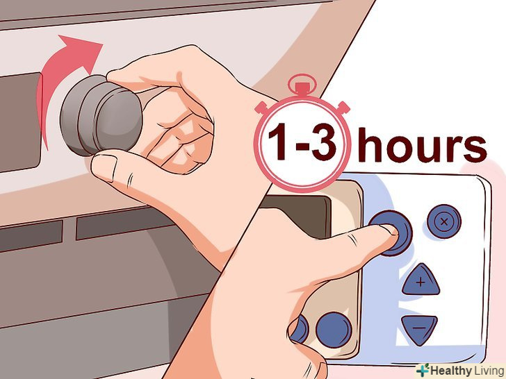 Зачекайте.перш ніж відкрити духовку, почекайте хоча б годину після закінчення самоочищення. В іншому випадку духовка може ще бути гарячою. Духовку не можна відкривати, поки вона не охолоне.[3]