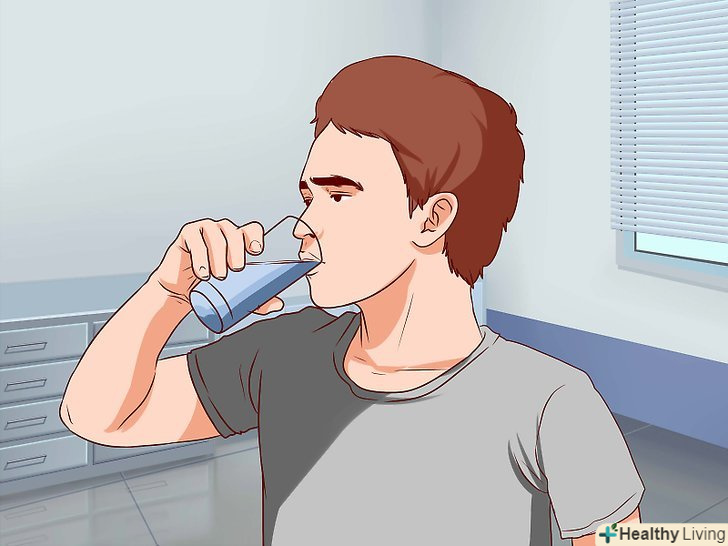 Пийте якомога більше води. якщо ви хочете зменшити неприємні симптоми, подбайте про те, щоб горло було досить зволожено. Пийте багато рідини. Крім того, розсмоктуйте льодяники або жуйте жувальну гумку. [10] [11]- Теплі напої заспокоюють біль у горлі. Пийте теплу воду, суп або теплий чай з медом.