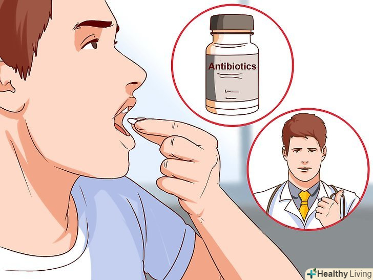 Прийміть антибіотик, призначений вашим лікарем. якщо ларингіт викликаний бактеріальною інфекцією, лікар може призначити антибіотик. Як правило, застосування антибіотика сприяє швидкому одужанню. [7]- Не приймайте антибіотики, попередньо не проконсультувавшись з лікарем.