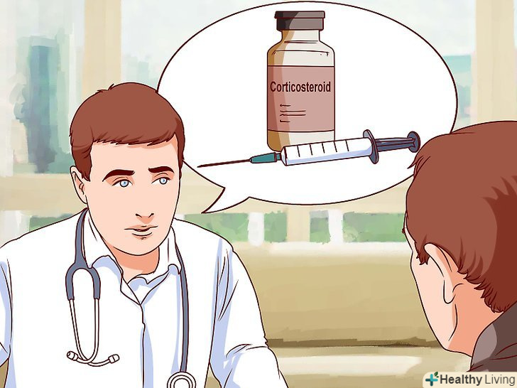 Дізнайтеся у лікаря про лікування кортикостероїдами. якщо у вас з'явилися симптоми ларингіту в той момент, коли голос вам дуже необхідний, наприклад, ви повинні виступати перед аудиторією з доповіддю або співати, запитайте у свого лікаря про можливість застосування кортикостероїдів. Застосування кортикостероїдів швидко зменшує симптоми ларингіту. [8]- Кортикостероїди, як правило, призначаються тільки у важких випадках.