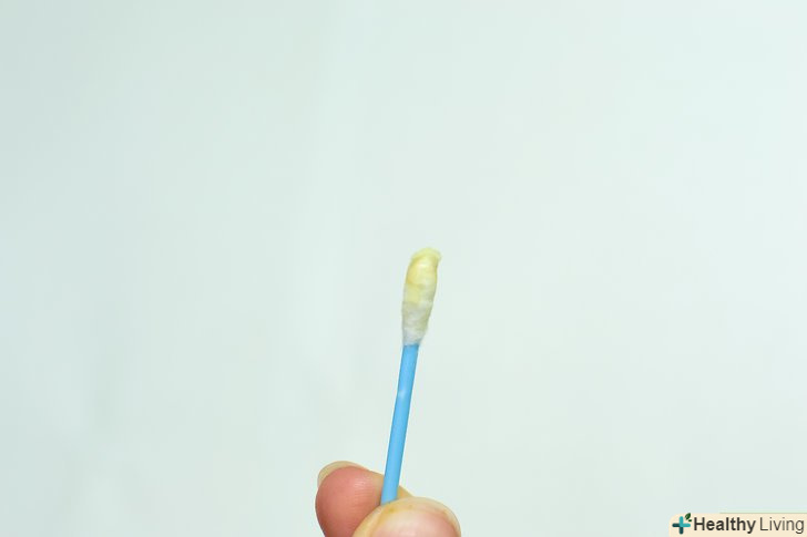 Почистіть виділення з вуха (якщо є). виділення можуть бути в'язкими, жовтими і з неприємним запахом, це, як правило, ознака того, що є пошкодження барабанної перетинки. Барабанна перетинка заживе приблизно через 3-4 тижні сама по собі. Очистіть зовнішню частину вуха ватною паличкою з м'яким наконечником, але пам'ятайте, що ніколи не можна засовувати ватяну паличку глибоко всередину вуха.