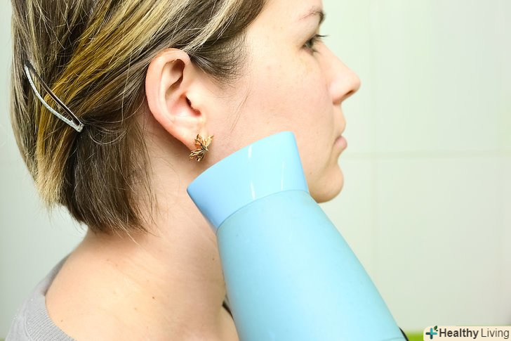 Погрійте вухо. вважається, що якщо вухо прогрівати, то це посприяє зменшенню рідини в ньому. Одним з можливих методів є прикладання теплої руки до вуха. Також можна використовувати фен, але обдувайте вухо ривками, а не одним довгим потоком, інакше вухо буде хворіти.