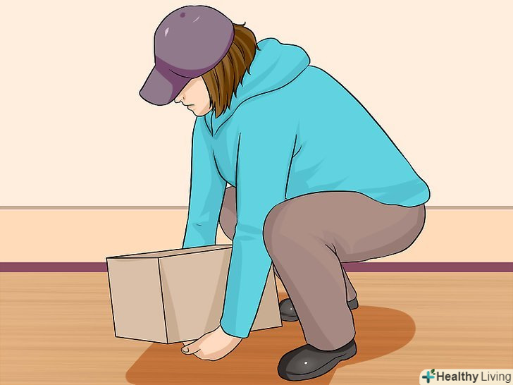 Намагайтеся піднімати тяжкості, застосовуючи правильну техніку. якщо піднімати і переносити важкі предмети неправильно, це може привести до появи сильного болю в спині. Якщо вам часто доводиться виконувати важку фізичну роботу, то спробуйте носити пояс для підтримки спини, який допоможе зберігати правильну поставу під час підйому важких предметів. Крім того, постарайтеся займати правильні положення:- Згинайте коліна, а не талію. М'язи ніг і живота призначені для того, щоб допомагати вам переносити і піднімати речі, а м'язи спини немає. Піднімаючи що-небудь, постарайтеся повністю зігнути коліна, замість того щоб нахилятися і напружувати поперек.