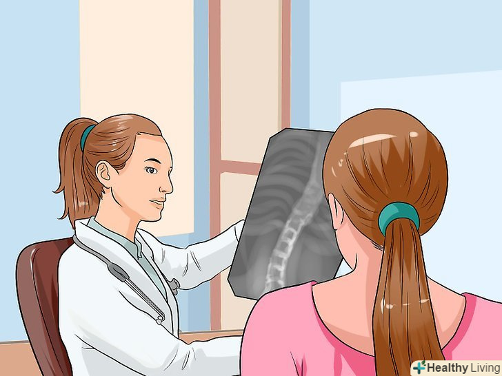 Проконсультуйтеся з мануальним терапевтом. йому знадобиться серія рентгенівських знімків спини і хребта. Пізніше він зможе виміряти точне викривлення хребта, щоб визначити серйозність вашої проблеми. Мануальний терапевт також зможе обстежити кожен хребець окремо на наявність порушень, зсувів або відхилень. Більшість цих проблем можна усунути в кабінеті мануального терапевта, але якщо він виявить більш серйозну проблему, то він направить вас до фахівця. [23]