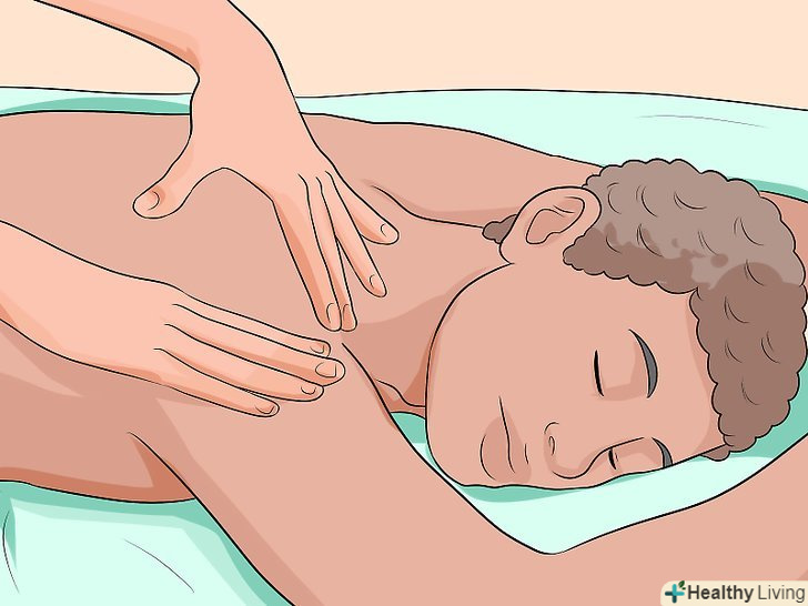Запишіться на регулярні сеанси масажу. через навантаження і постійної напруги м'язи спини можуть стати жорсткими, що призведе до сутулою спині. Якщо ви ведете напружений спосіб життя, постарайтеся до свого повсякденного життя додати сеанси масажу. [24]- Крім того, регулярне використання масажного крісла зменшить напругу, але воно не замінить професійного масажиста, здатного надати спеціалізований тиск на в ті ділянки, які вимагають цього найбільше.