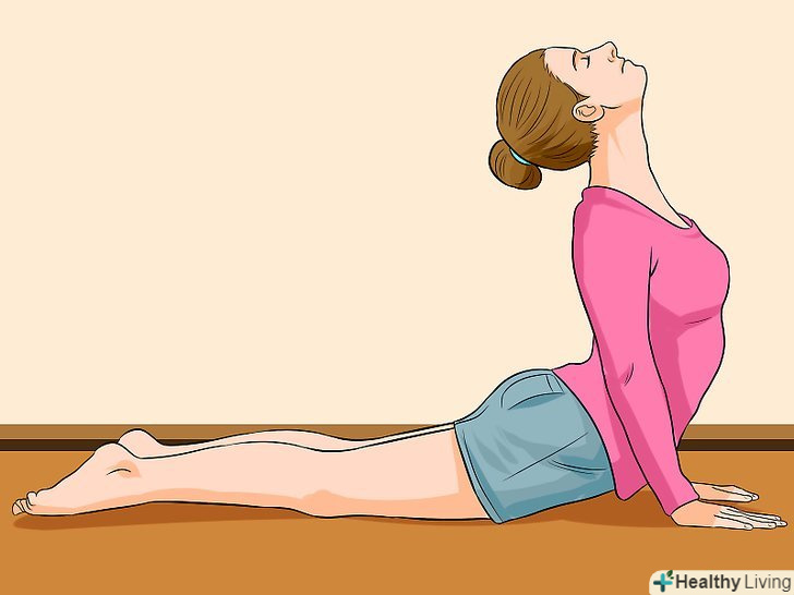 Практикуйте йогу. Йога особливо корисна для поліпшення постави. До деяких найкращим вправам відносяться:- Кобра. ляжте на живіт, поклавши руки під плечі. Пальці повинні вказувати вперед. Потім, тримаючи лікті близько до тіла, спробуйте зімкнути лопатки разом. Постарайтеся забезпечити стійкість спини, напружуючи черевні м'язи. Потім повільно піднімайте груди до стелі, намагаючись витягати шию. Спирайтеся на руки, але витягуйтеся за рахунок м'язів спини. Затримайтеся в цьому положенні на 10 вдихів, потім опустіться. Повторіть 3 рази. [9]