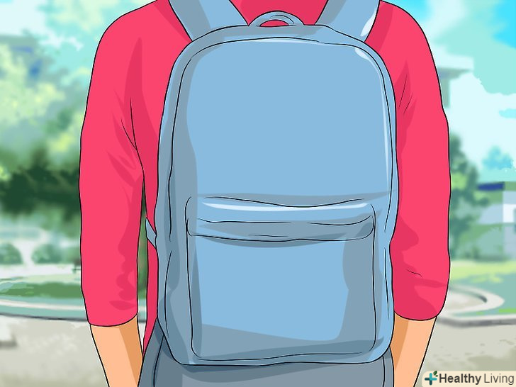 Виберіть відповідну сумку. вибирайте таку сумку, портфель або рюкзак, які допоможуть рівномірно розподілити вагу по всій спині. Постарайтеся вибрати виріб з широкими м'якими лямками, які можна розмістити на обох плечах. [14]