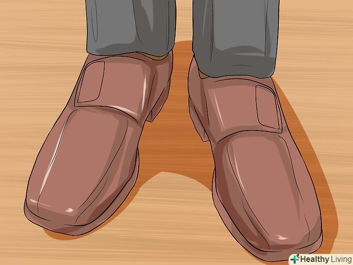 Вибирайте підтримуючу взуття. постійне носіння зісковзує взуття без шнурівки або на високих підборах створює додаткове навантаження на спину. Шукайте взуття з підтримуючою підошвою, прямокутним носком і п'ятою не вище 2,5 см. більш висока п'ята призводить до перенесення ваги вперед, що збільшує сутулість або призводить до надмірної корекції, що однаково шкідливо для спини. [15]