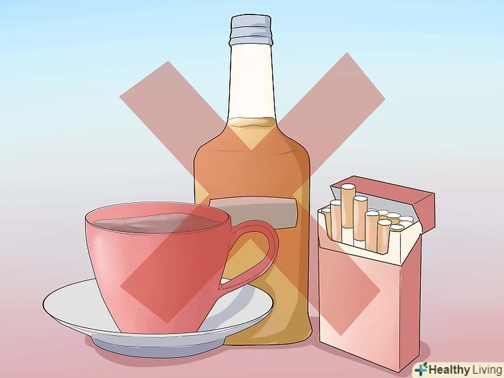 Уникайте вживання кави, алкоголю, а також куріння. ці природні стимулятори роблять нерви внутрішнього вуха дуже збудливими. В результаті їх вживання ви будете відчувати набагато більш гостру реакцію на незначні подразники, наприклад на прості рухи.- Алкоголь і кава також викликають зневоднення, яке шкідливо для здоров'я внутрішнього вуха.