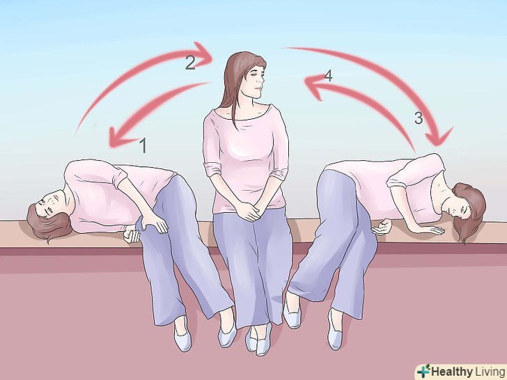 - Робіть вправи для звикання. Їх мета-спровокувати симптоми свідомо і тренувати мозок так, щоб він звик до симптомів. Одним із прикладів є вправа Бранта-Дарова. Вам потрібно швидко лягти з положення сидячи, з головою повернутою під кутом 45 градусів. Лежіть спокійно протягом 30 секунд, або поки не пройде запаморочення. Потім знову сядьте. Повторіть процедуру, повернувши голову в протилежну сторону. Робіть вправу 3 рази в день.