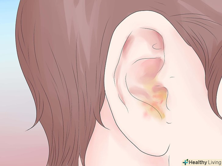 Перевірте наявність виділень з вух. виділення гною або безбарвної рідини вказують на бактеріальну інфекцію середнього вуха (отит середнього вуха), яка проникла в барабанну перетинку (перегородка між зовнішнім і середньому вухом). Ви повинні звернутися до лікаря негайно для контролю інфекції, тому що це може привести до незворотного погіршення слуху.- Подумайте, чи відчуваєте ви тяжкість у вухах. Якщо у вас накопичується гній або рідина в середньому вусі, ви можете відчувати тяжкість або тиск в хворому вусі. Це зазвичай відбувається при бактеріальних інфекціях.