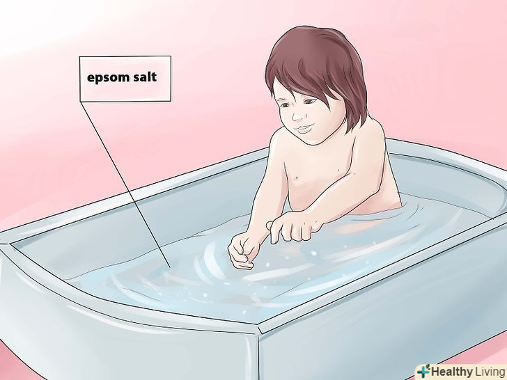 Приготуйте своїй дитині заспокійливу соляну ванну. для такої домашньої процедури, вам знадобиться півтори склянки морської солі, півтори склянки меду і три чашки оцту. Заповніть ванну теплою водою, занурте або занурте свою дитину в ванну і поступово додайте всі інгредієнти в чотири етапи. Нехай ваша дитина поніжиться у ванній близько двадцяти хвилин. Поєднання компонентів допоможе полегшити свербіж і зменшити висип. [2]