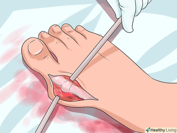 Задумайтеся про операцію. як останній варіант задумайтеся про операцію з видалення бурситу, під час якої, кістка буде частково видалена і великий палець ноги буде встановлений паралельно іншим пальцях. [4] операція з видалення бурситу поширена і вважається єдиним способом лікування бурситу.- Існує кілька варіантів бурсектомії. Проведіть дослідження з вашим лікарем і визначте, який варіант вам більше підходить.