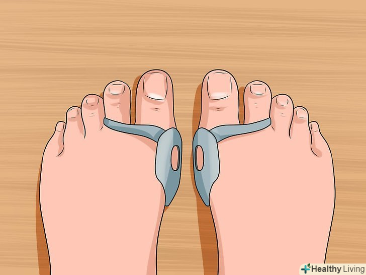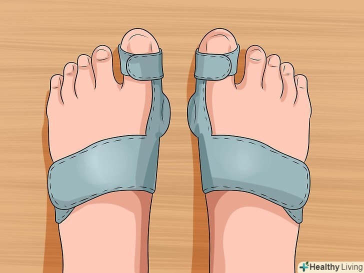 Носіть устілку від бурситу або устілки для вирівнювання пальців. Якщо ви помітили бурсит на ранніх стадіях, ви можете купити устілку від бурситу в аптеці і повернути ваш палець в нормальне положення і уникнути болю. Спортивні устілки також можуть направити ваші пальці в потрібне положення під час ходьби в туфлях.