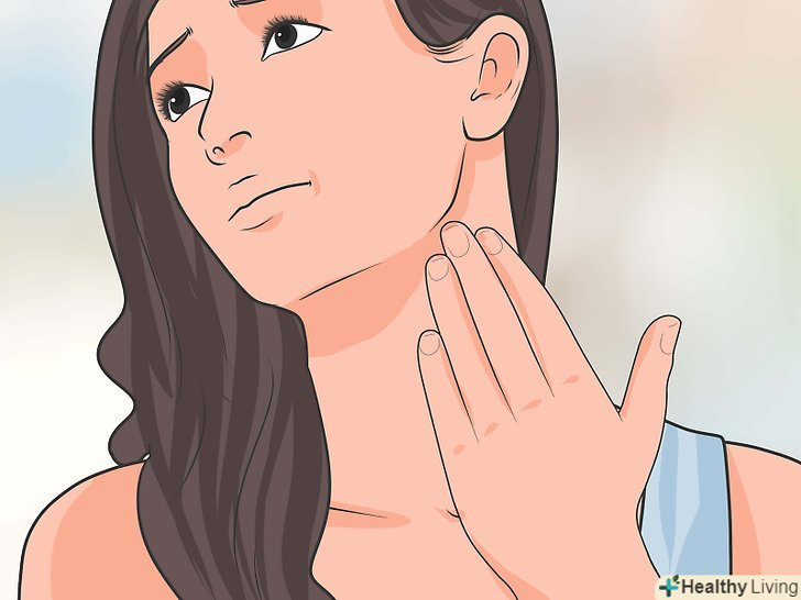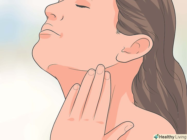 Помацайте шию на наявність припухлостей. з розвитком інфекції лімфатична система почне з нею боротися. Збільшення лімфовузлів в шиї вказує на погіршення інфекції. [13]- Трьома середніми пальцями руки промацайте лімфовузли . Обережно промацайте шию і область під щелепою на наявність припухлостей.