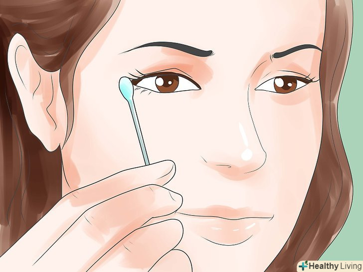 Чистіть очі м'якими ватяними паличками. як зазначалося вище, Кір часто супроводжується кон'юнктивітом. Одним з найбільш помітних симптомів кон'юнктивіту є рясні виділення з очей. Через це на очах може утворюватися скоринка з висохлих виділень, і іноді буває навіть складно їх розімкнути (особливо після сну). Щоб видалити цю корочку, змочіть в чистій теплій воді ватяну кульку і витріть очі від внутрішнього до зовнішнього кута. Використовуйте для кожного ока окрему ватку.- Кон'юнктивіт може прийняти дуже серйозну форму, тому краще запобігти його. Дотримуйтесь правил гігієни, щоб хвороботворні мікроби не потрапили в очі. Якщо ви доглядаєте за хворим на кір дитиною, мийте йому руки і надягайте на них рукавички, щоб зменшити ймовірність того, що він занесе віруси в очі, коли помацає їх після того, як почухає висип.