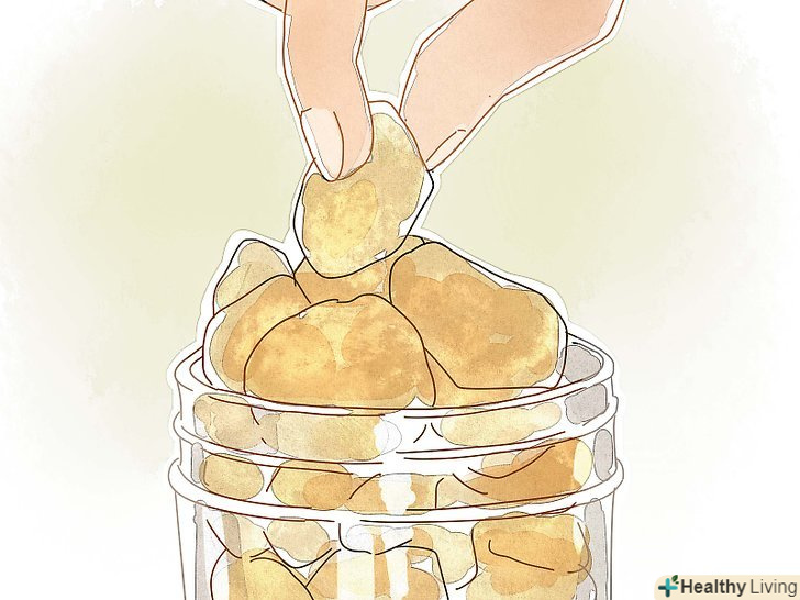 Використовуйте мелений, свіжий або зацукрований імбир. імбир допомагає при нудоті і здутті, він також збільшує виділення жовчі і шлункового соку, розслабляє м'язи травного тракту і зменшує дискомфорт. Ви можете випити чашку імбирного чаю, пожувати шматочок свіжого або зацукрованого імбиру. [4] свіжий імбир має досить насичений смак, тому будьте обережні, коли ви кладете перший шматочок в рот.- Рекомендована добова норма імбиру становить близько 4 грамів на день. Розділіть добову норму на 4 прийоми - по одному граму через кожні чотири години, якщо це необхідно. [5]