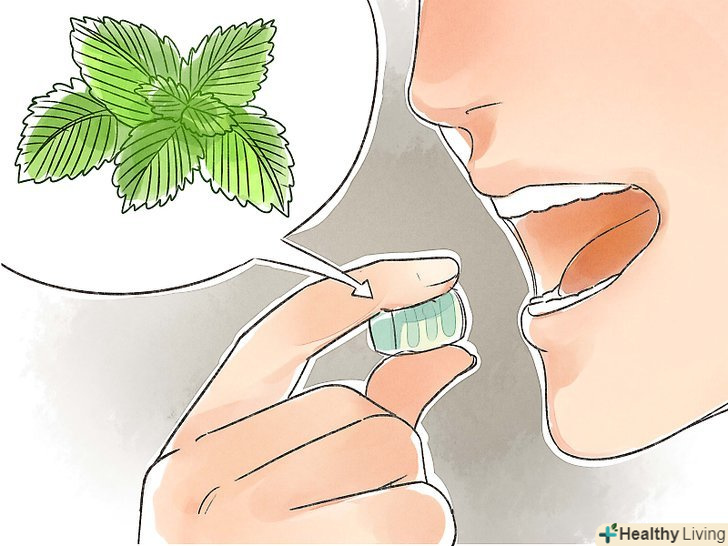 Пожуйте м'яту протягом 20 хвилин. дуже часто люди застосовують м'яту після рясного прийому їжі, як правило, у вигляді м'ятних цукерок. Вважається (але не доведено), що м'ята нормалізує роботу травного тракту і розслабляє м'язи шлунка. Вона також приємна на смак і освіжає подих.