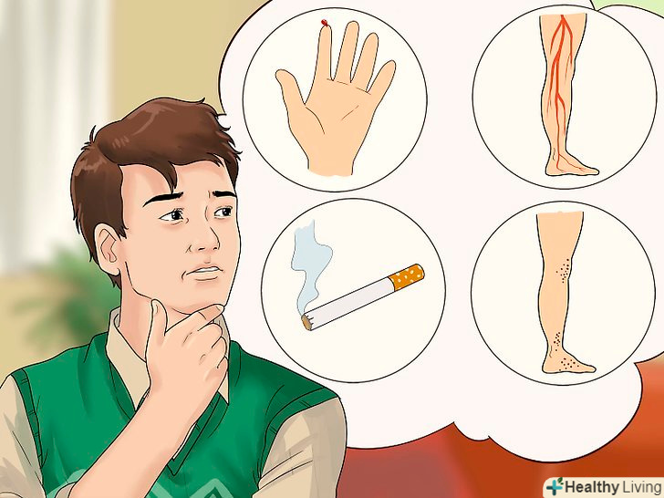 Киньте палити.Відмова від цієї шкідливої звички допомагає запобігти гангрену і її поширення, так як куріння погіршує кровообіг і сприяє блокуванню кровоносних судин. Без припливу крові тканини відмирають, і розвивається гангрена. Необхідно утримуватися від усього, що погіршує кровопостачання, в тому числі і від куріння.[2]- Міститься в сигаретах активна речовина нікотин вкрай негативно позначається на кровоносних судинах. Нікотин звужує судини і тим самим погіршує кровообіг. Якщо в будь-яку частину тіла надходить менше крові, вона отримує меншу кількість кисню. Тривалий дефіцит кисню в тканинах викликає їх некроз (відмирання), що призводить до розвитку гангрени.