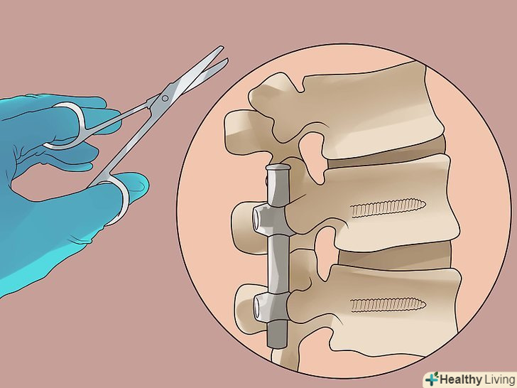 Менш поширені операції. крім декомпресії вам знадобитися спондилодез або протез міжхребцевого диска.- Спондилодез – це операція, при якій хребці міцно фіксуються між собою для виключення їх руху.