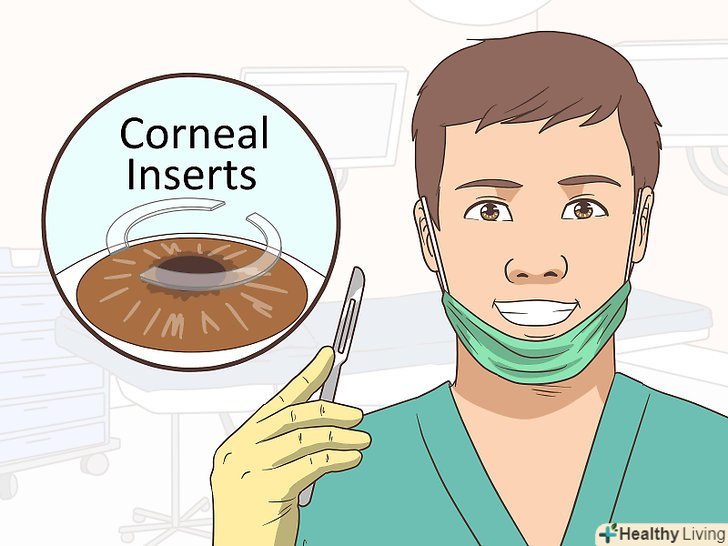 Обговоріть з лікарем установку сегментних кільцевих імплантатів. у запущених і важких випадках лікар може порадити особливий пластиковий імплантат, який допоможе рогівці зберегти форму і виправить спотворення зору. Ці імплантати встановлюють хірургічним шляхом, але сама процедура займе всього 10-15 хвилин. [10]- Необхідно, що вас хтось відвіз додому після процедури, і вам потрібно буде відпочити кілька днів після операції. Швидше за все, у вас виникне тимчасове погіршення зору, але вже через кілька місяців ваш зір стане більш чітким і ясним. Тривалість відновлення буде залежати від тяжкості захворювання. [11]