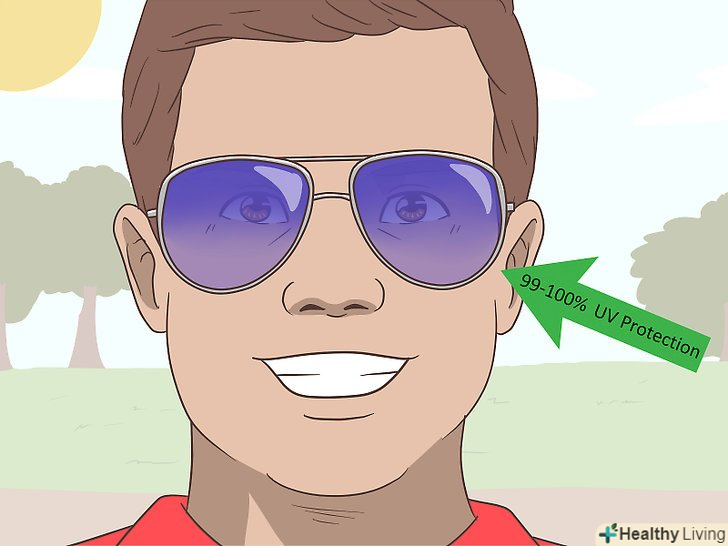 Носіть сонцезахисні окуляри з захистом від ультрафіолету. тривалий вплив сонячних променів може викликати або посилити кератоконус. Виходячи з дому, не забудьте надіти сонцезахисні окуляри, що блокують 99-100% УФ-променів, щоб уберегти очі. Знайдіть окуляри, на яких написано, що вони захищають від ультрафіолету, або попросіть лікаря або фармацевта порадити Вам захисні окуляри. [5]