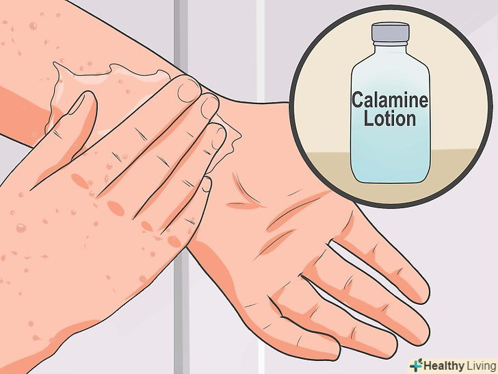 Скористайтеся лосьйоном «каламін». «каламін» — прекрасний засіб проти свербіння шкіри і для загоєння висипань. Наносите лосьйон на висипання стільки, скільки потрібно, якщо свербіж і біль стали вираженими. Лосьйон "каламін" заспокоює шкіру і сприяє загоєнню висипань.- Також можна скористатися і іншими засобами для обробки шкіри. Можна наносити на шкіру кольорові антисептики, наприклад діамантовий зелений (»зеленку«), фукарцин або»Реглісам Октагель". Не варто використовувати мазь гідрокортизону. [14]