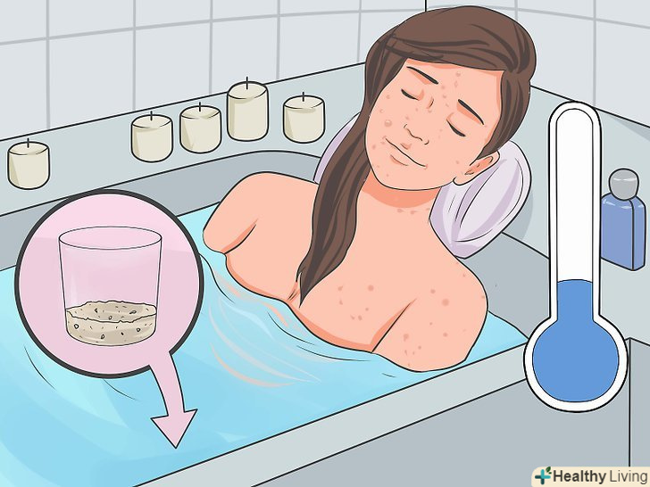 Приймайте прохолодну ванну. приймайте холодні або теплі ванни для полегшення свербіння на шкірі. Не користуйтеся милом, щоб не провокувати роздратування в місцях висипань. Ванна з теплою водою допомагає знизити високу температуру тіла, проте стежте, щоб при цьому не з'явився озноб.- Додайте в ванну пластівці вівсянки, харчову соду або вівсяну муку, щоб заспокоїти свербіж і роздратування.