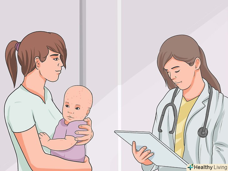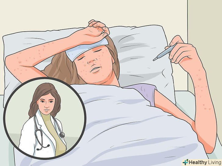 Викличте лікаря, якщо симптоми стали серйозними. незалежно від віку хворого, є певні симптоми, які повинні насторожити — при їх появі необхідно якомога швидше викликати лікаря. Негайно викличте лікаря, якщо температура тримається більше чотирьох днів приблизно на рівні 38,9 °C, якщо висипання наповнилися гноєм або розташовуються близько до очей, якщо з'являються порушення свідомості, порушення в ході або складності з ходьбою, якщо ви відчуваєте напругу в шиї, Якщо з'явився сильний кашель, часта блювота або утруднення дихання.- Лікар проведе огляд і визначить тактику подальшого лікування. Такі прояви можуть свідчити про тяжкий перебіг вітряної віспи з приєднанням бактеріальної інфекції або іншої вірусної інфекції. [19]