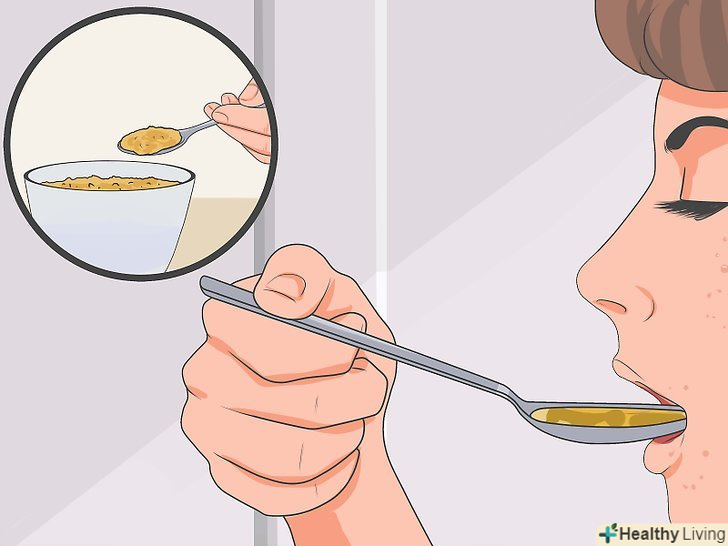 Дотримуйтесь щадну дієту. при вітряній віспі ураження можуть розташовуватися на слизовій ротової порожнини. У таких випадках груба їжа часто викликає дискомфорт і біль, тому дотримуйтесь щадну дієту: споживайте теплі супи, каші, пудинги і морозиво. При вираженій хворобливості виразкових уражень у роті виключіть солону, гостру, кислу і гарячу їжу.- Також для полегшення болю в роті можна розсмоктувати кубики льоду, фруктове морозиво, льодяники. [6]