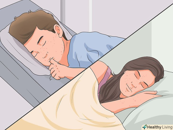 Покрийте руки. одягніть на руки рукавички або шкарпетки, якщо ви або дитина не можете втриматися від розчісування навіть з підстриженими нігтями. Завдяки цьому ви не пошкодите шкіру.- Навіть якщо ви або дитина не відчуваєте вираженого свербіння в денний час, все одно надягайте рукавички хоча б на ніч, оскільки ви можете чесати висипання уві сні. [11]