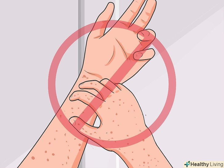 Не чешіть. Пам'ятайте самі і нагадуйте дитині не чесати висипання. Це дуже важливо, оскільки розчісування шкіри сприяє ще більшого подразнення і проникненню інфекції. Крім цього через расчесов на місці виразок потім можуть залишитися рубці.- Буває дуже складно втриматися, але постарайтеся не чесати висипання і утримуйте від цієї дитини. [9]